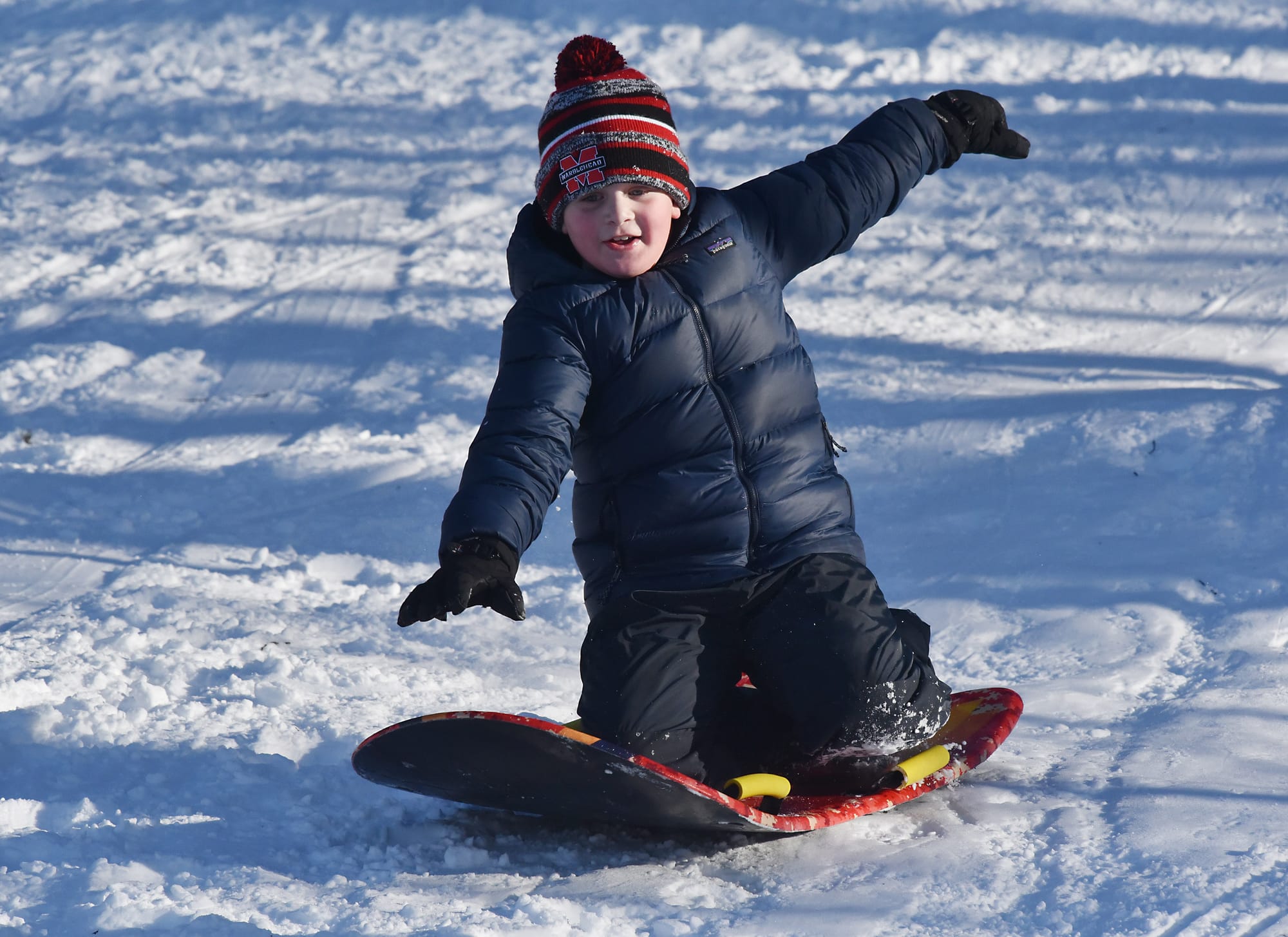 By Tuesday, the slope was alive with sleds and a handful of improvised jumps carved into the packed snow. The scenes below, photographed by Paula Muller, capture the energy at Seaside Park as residents returned outdoors in the wake of the storm.