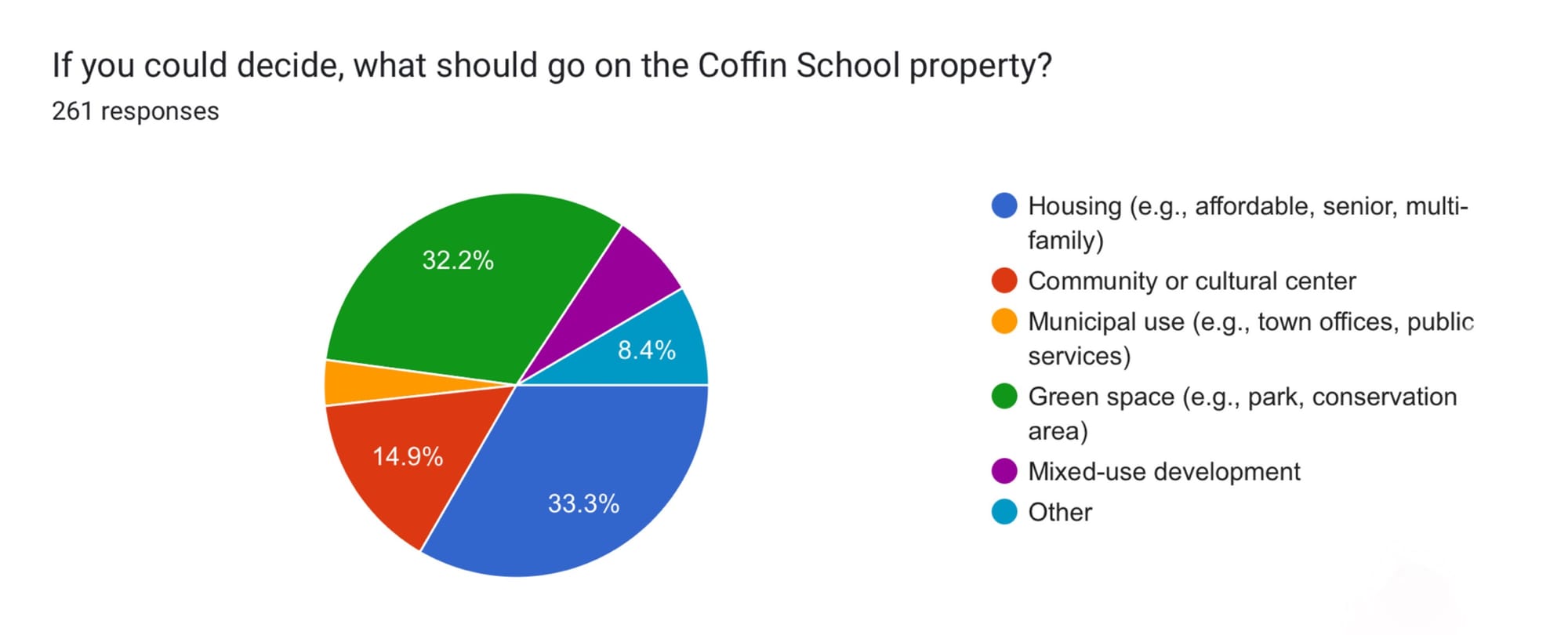 Housing emerged as the top choice for the former Coffin School property in an online poll created by the Marblehead Independent, with green space and community or cultural centers also drawing significant support as the town received three formal proposals for the site’s redevelopment.