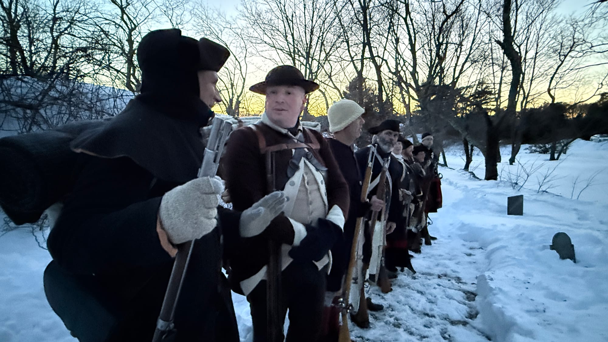The ceremony featured a brief program of remarks followed by three musket volleys and a return march toward Glover Square, where the regiment fired three additional volleys at Glover's former home.