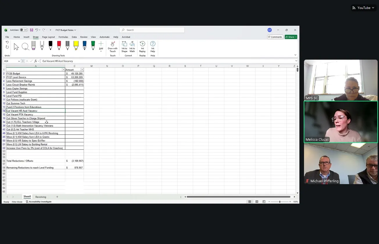 The Marblehead School Committee Budget Subcommittee reviewed a $1.7 million gap between current spending and projected costs for fiscal year 2027 during a meeting Jan. 5, with administrators reporting they have reduced that shortfall to roughly $879,000 through a combination of unfilled vacancies, operational shifts and fund reallocations that do not immediately affect classroom instruction.