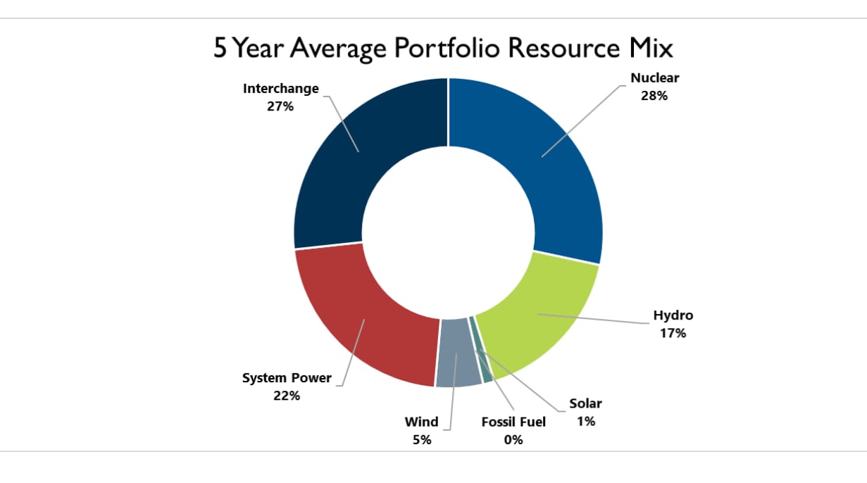 Average wholesale power costs decreased 3.4% year-over-year from 2023 to 2024, dropping from 11.28 cents per kilowatt hour to 10.9 cents, creating what officials describe as a scenario where cleaner energy costs less.