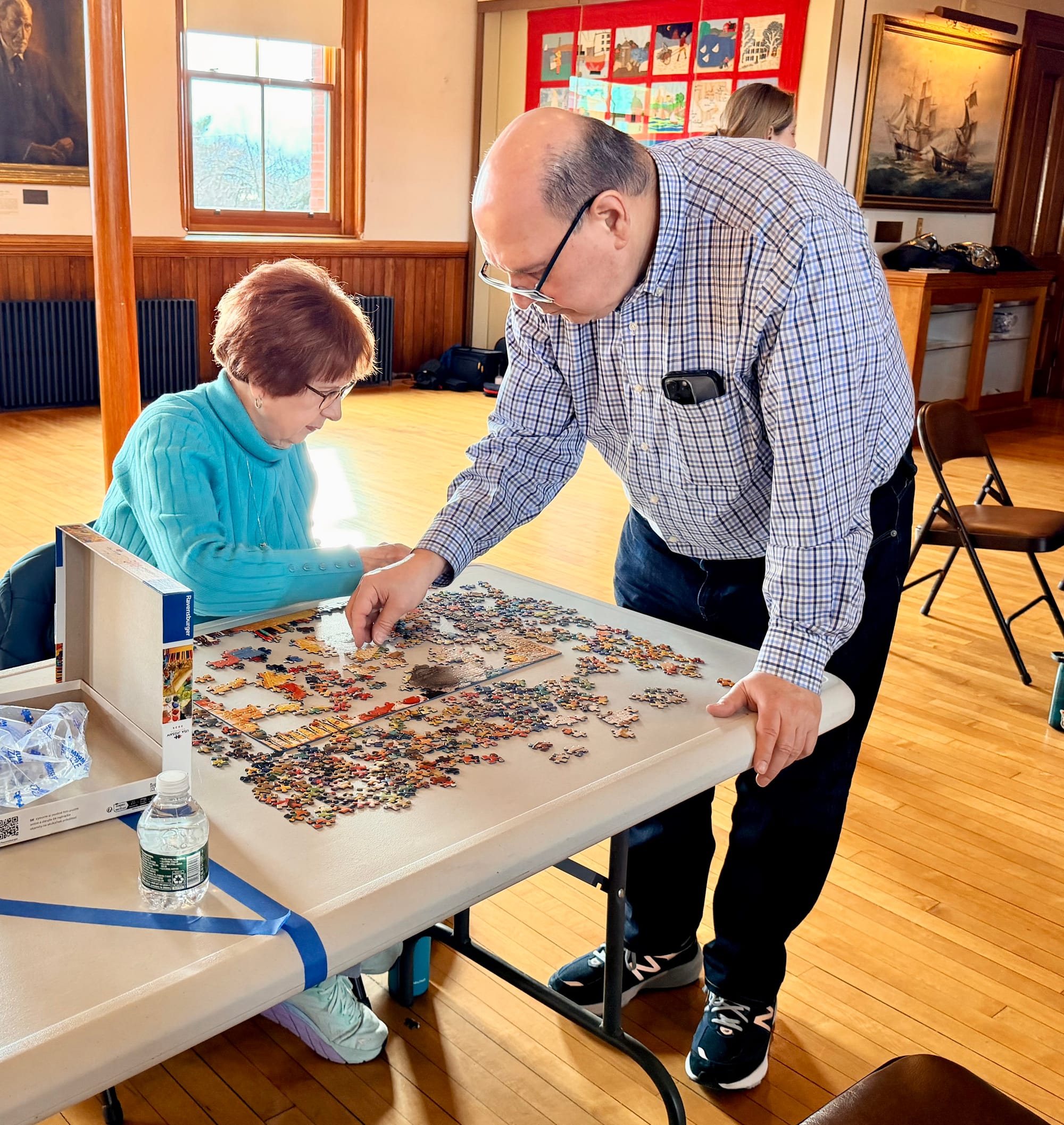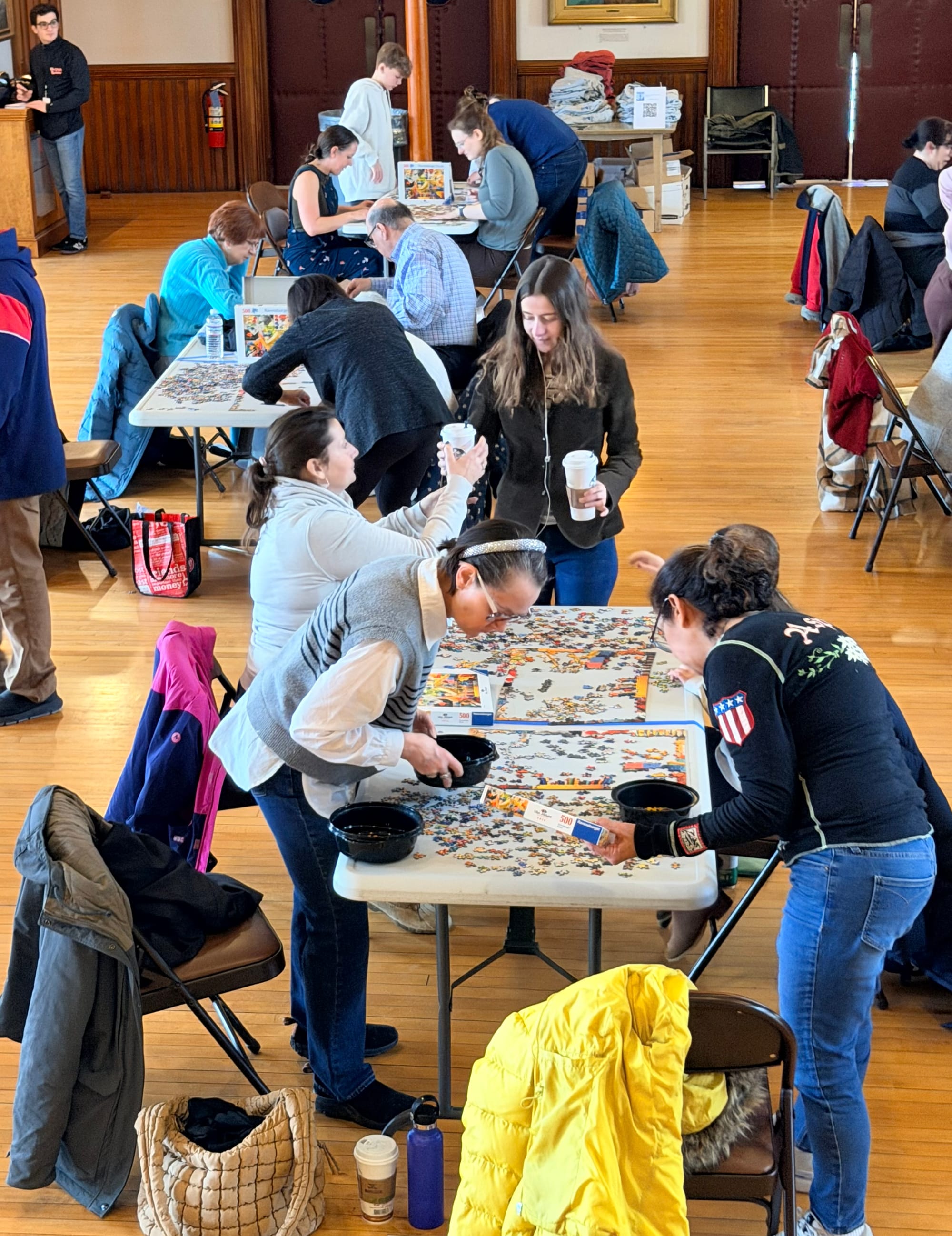 The premise was simple. Tables were stationed around Abbot Hall, each with a new, sealed, 500-piece puzzle just waiting to be solved. The first two-person team to complete their puzzle won.