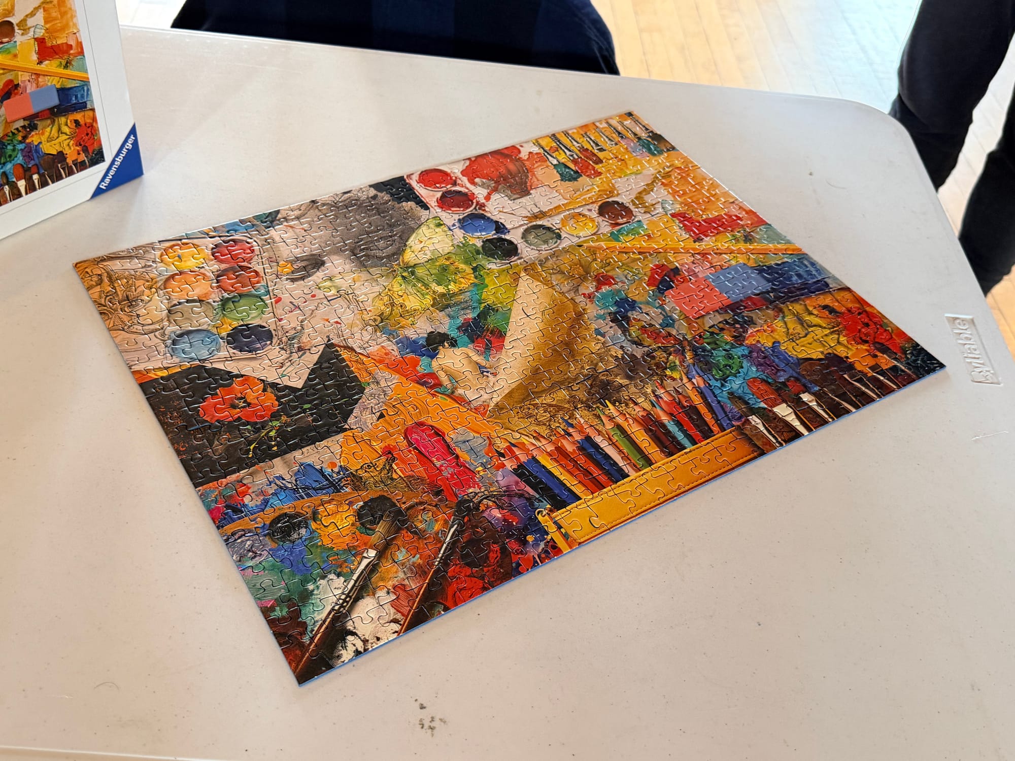 Steinig said they decided to give it a try because they do puzzles all the time and thought it would be fun. Low lighting and small pieces made it a little frustrating, and Steinig pointed out that London was also colorblind, ironic since the theme of the puzzle was art with colorful pots of paint, brushes and pencils.