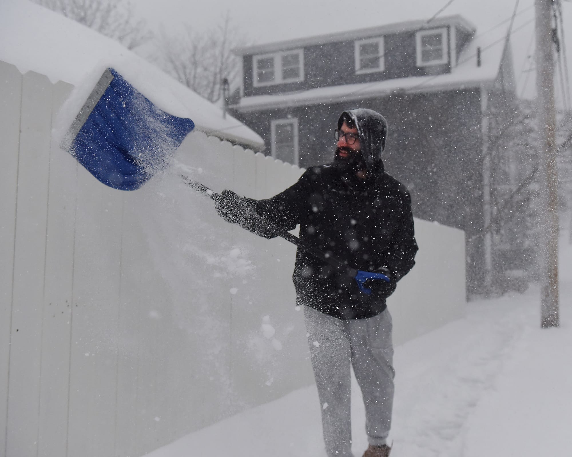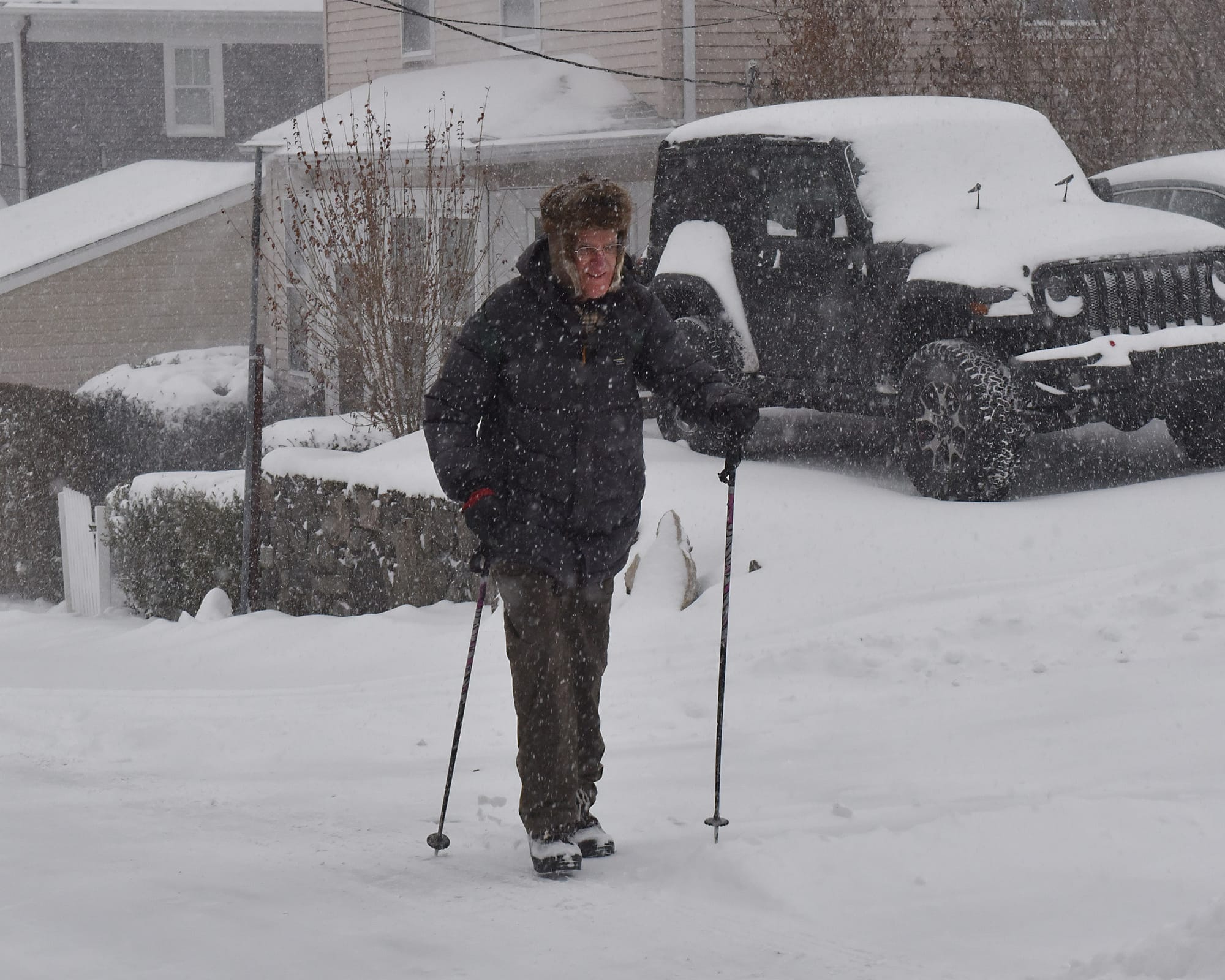Beckett Noyes uses a friend’s snowblower to clear the sidewalk in front of his home on Washington Street on Jan. 26. Deep drifts made the walkway difficult to cross. INDEPENDENT PHOTO / PAULA MULLEREli Pearlstein of Marblehead, Mass., shovels the sidewalk on Pickett Street during a winter storm on Jan. 25, 2026. INDEPENDENT PHOTO / PAULA MULLERarren Bowes of Marblehead, Mass., walks up Pickett Street as a winter storm moves in on Jan. 25, 2026. The storm intensified quickly, dropping snow at a rate of several inches an hour. INDEPENDENT PHOTO / PAULA MULLERSnow falls on parked cars in the Old North Church parking lot in Marblehead, Mass., about 4 1/2 hours into a winter storm on Jan. 25, 2026. INDEPENDENT PHOTO / PAULA MULLERBartholomew heads out on Washington Street on Jan. 25 before a winter storm ramps up. Owner Aidan Gainor stands by. INDEPENDENT PHOTO / PAULA MULLERTulips brighten a Front Street window framed by ice and snow, Monday, Jan. 26. INDEPENDENT PHOTO / PAULA MULLER