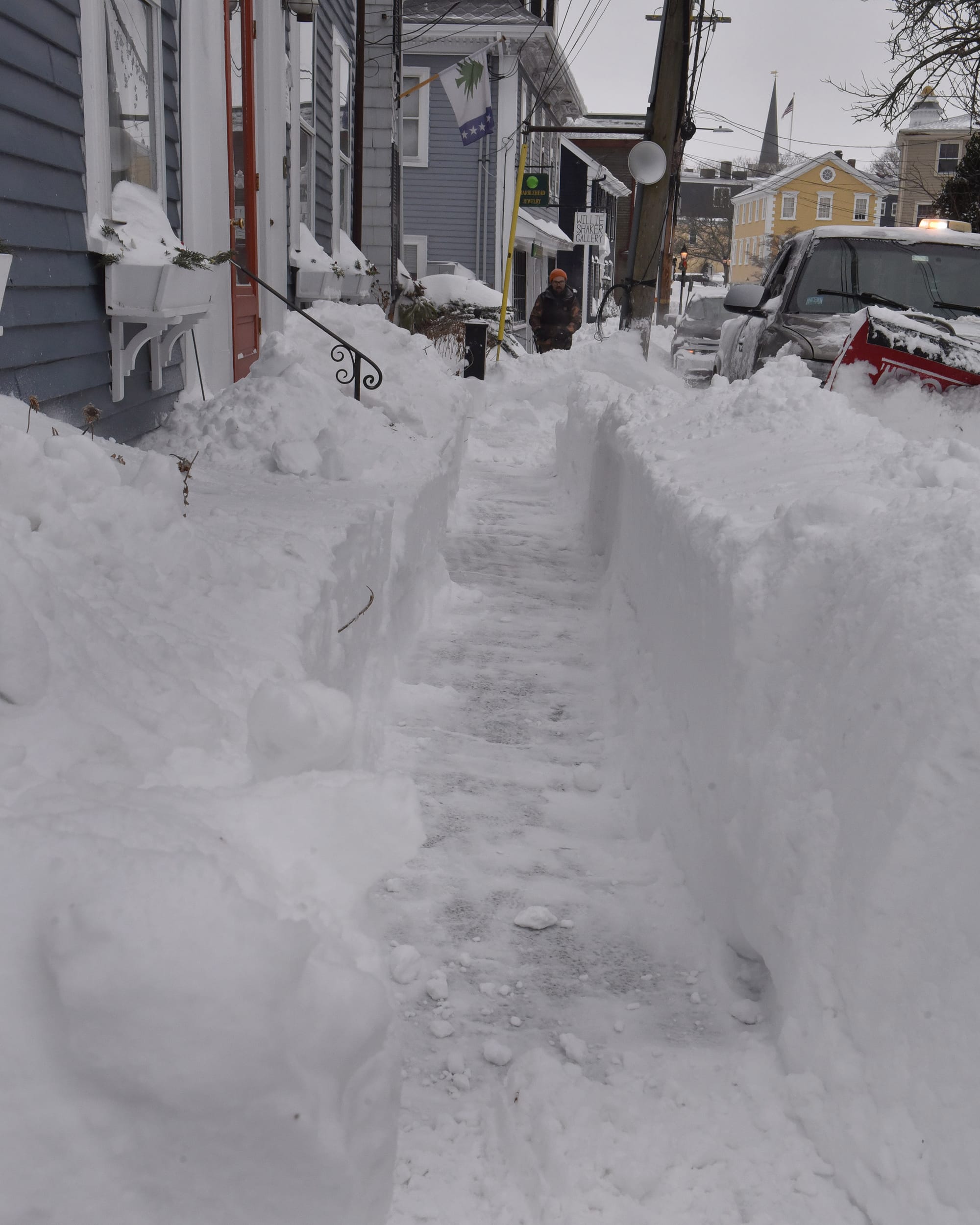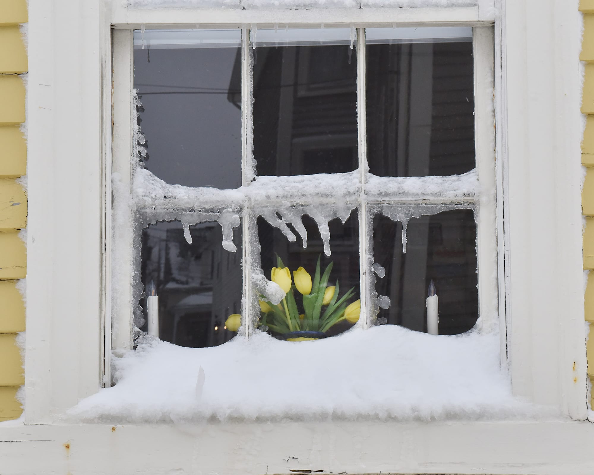 A major winter storm buried town streets, sidewalks and driveways under heavy snow and wind-driven drifts, leaving residents and crews carving narrow passages, clearing cars and doorways and digging out fire hydrants as conditions improved. Even as the cleanup began, the storm left small scenes of stillness and contrast — from ducks riding out the weather in the harbor to tulips glowing behind an ice-framed window – captured by our photographer Paula Muller.