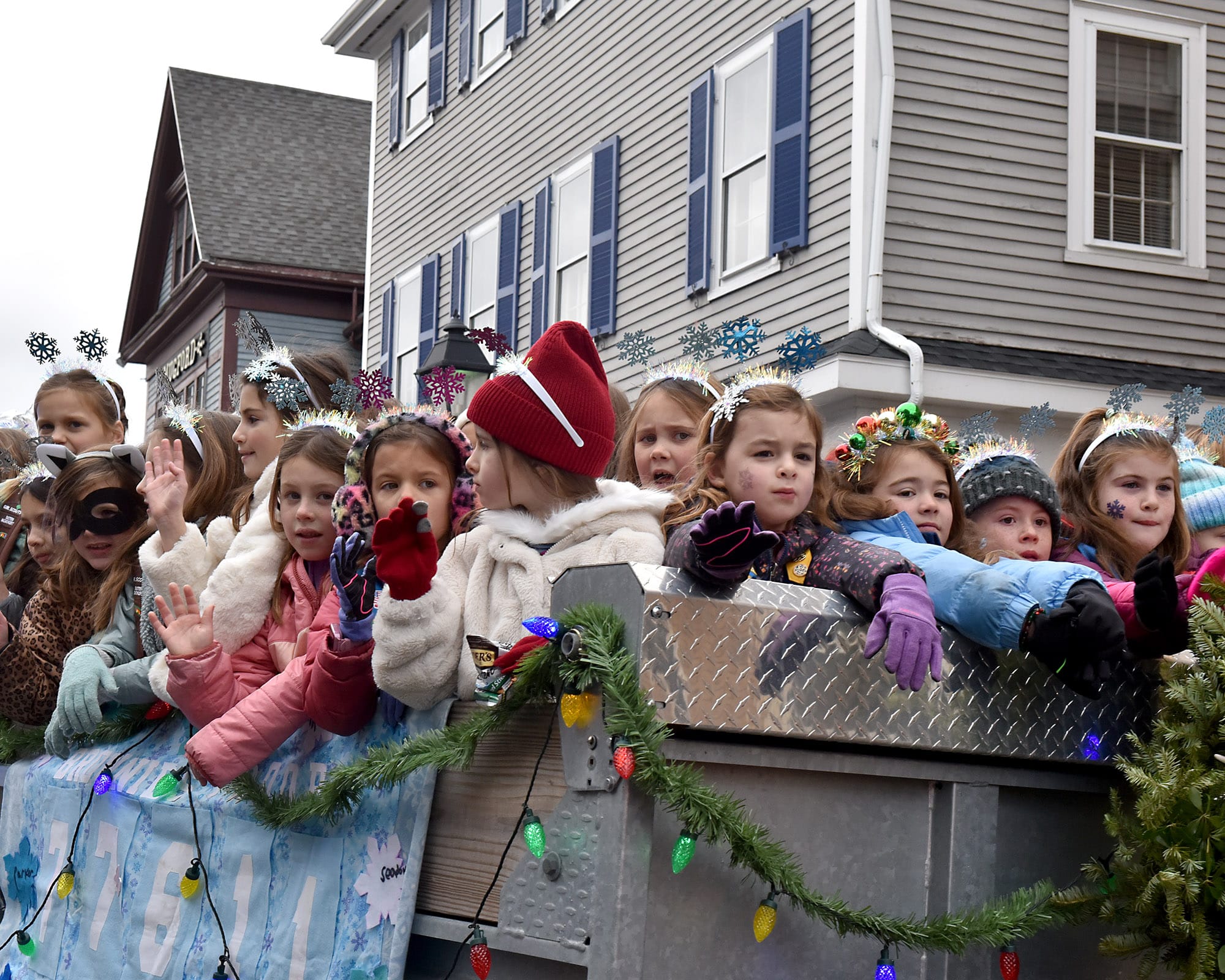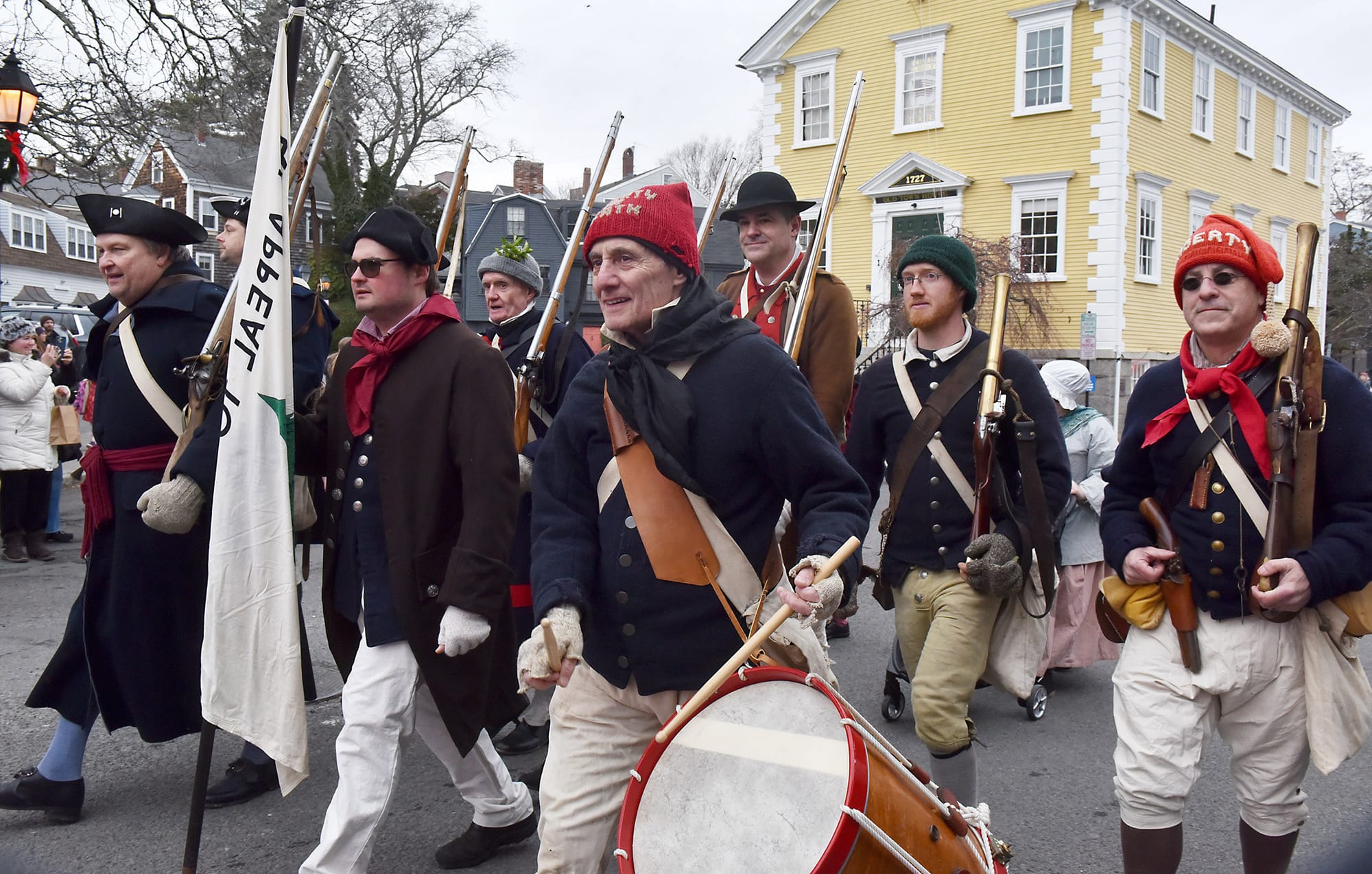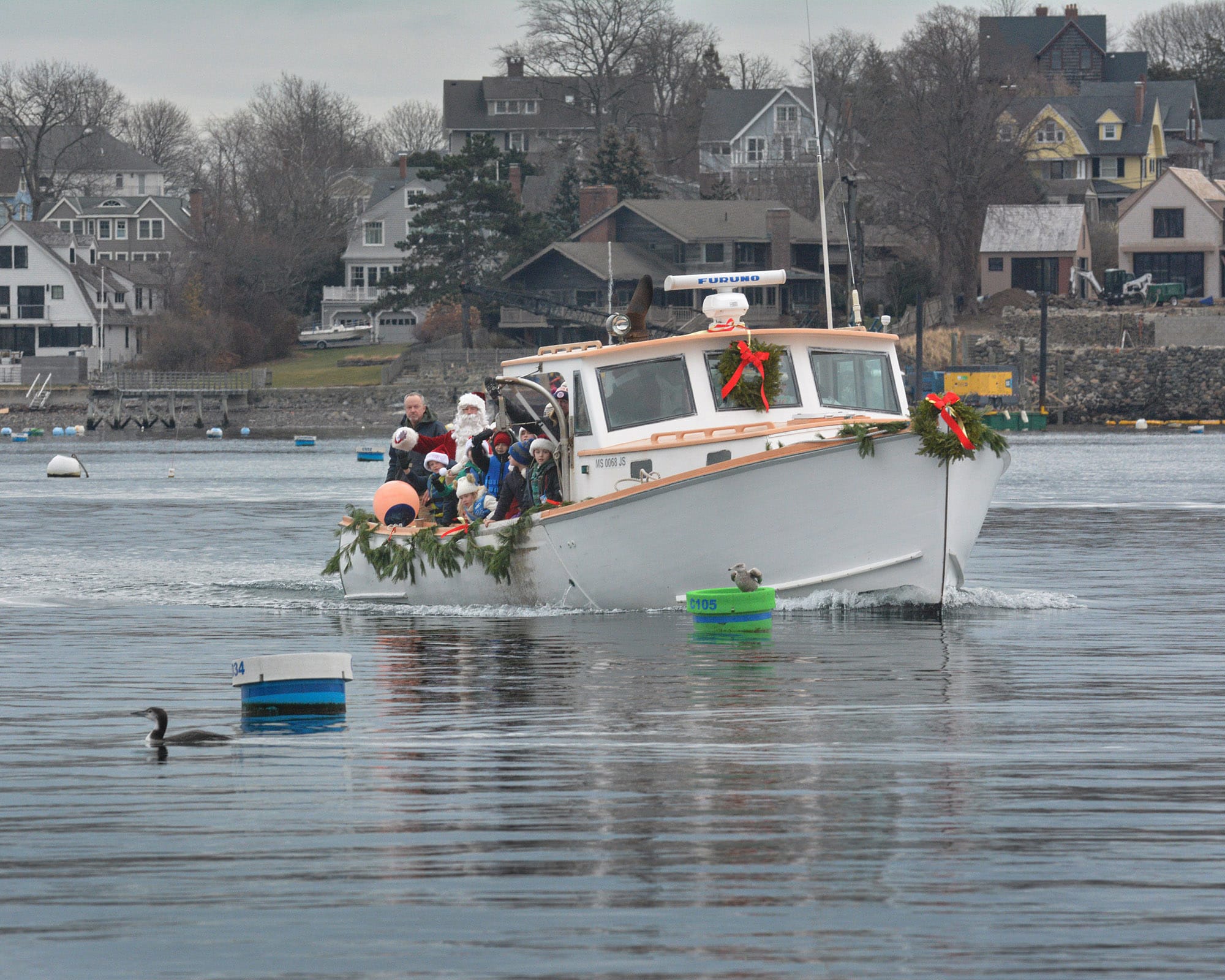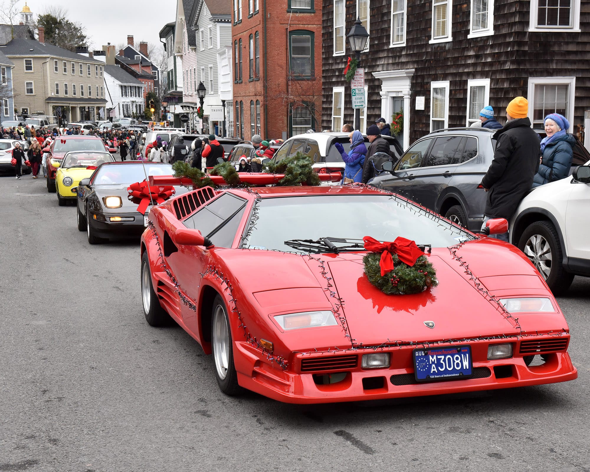 Santa Claus and Mrs. Claus greet the waiting crowd at the landing. Santa arrived by lobster boat, a signature tradition of the Marblehead Christmas Walk, waving to families gathered along the waterfront.Santa’s lobster boat, trimmed with greens and bows, makes its way toward State Street Landing as spectators gather along the waterfront. INDEPENDENT PHOTOS / PAULA MULLERAA bundled toddler peeks out from a stroller during the Christmas Walk festivities.Santa and Mrs. Claus wave from the bow as children crowd forward for a view during the Christmas Walk’s traditional harbor arrival. Marblehead police officers stand along the parade route as crowds move toward the waterfront and downtown.Young participants line a holiday-themed parade float, waving to spectators along the route.A Marblehead fire engine and police motorcycle lead the way through the crowded streets of Old Town. The parade drew dense crowds who packed the sidewalks to watch the marchers, floats, and first responders pass by.A group of children sits curbside, bundled in heavy winter coats and hats. The young spectators have claimed front-row seats to watch the holiday parade pass by.Crowds pack the narrow streets of Old Town near the iconic "Maddies" Sail Loft sign. Members of Glover’s Marblehead Regiment march in period uniform on the left, joining a procession that includes festive floats like a boat piled high with holiday gifts.A couple carefully adjusts a holiday wreath on a large grey float or display, adding the finishing touches before the celebrations get fully underway.Spectators line the railing outside "The Landing" restaurant, bundled in winter gear as they watch the festivities unfold from the deck.A member of Glover’s Marblehead Regiment holds a musket topped with a festive sprig of greenery. The reenactor is dressed in the regiment's traditional blue coat with red trim and a grey knit cap.Santa and Mrs. Claus wave to the crowd as they make their way up the metal ramp from the dock, marking their official arrival in Marblehead.Three children, including a baby in a blue hat, gather for a group photo with Santa and Mrs. Claus.Santa and Mrs. Claus walk along the waterfront, with Santa waving to the onlookers, accompanied by a golden dog.Families pack the dock at State Street Landing on Saturday morning as Santa arrives by lobster boat during the 54th annual Marblehead Christmas Walk.A festive fleet of cars joins the procession, led by a bright red Lamborghini decked out with string lights and a holiday wreath on the hood. The sports car cruises down the street, adding a flash of modern horsepower to the traditional lineup.The Marblehead Pride Committee marches through town holding a colorful banner that wishes the crowd "Happy Holidays." The sign features inclusive festive symbols, including a menorah and a heart displaying the Progress Pride flag colors.