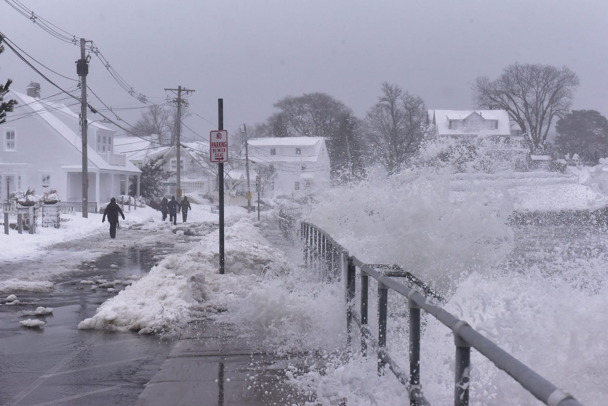 Residents make their way along Front Street on Monday afternoon, Feb. 23, during high tide as waves splash seawater onto the roadway. INDEPENDENT PHOTO / PAULA MULLERA plow works along Stacey Street on Monday morning, Feb. 23, as crews begin clearing roads. Despite chains on its tires, the truck struggles on the steep incline of Pickett Street. INDEPENDENT PHOTO / PAULA MULLERA prism rests on a windowsill Monday, Feb. 23, as wind-driven snow cakes the exterior glass, blocking the view outside during the height of the storm. INDEPENDENT PHOTO / PAULA MULLERViewed from inside a home Monday, Feb. 23, windows are completely sealed by wind-driven snow, leaving no visibility as the overnight storm bears down. INDEPENDENT PHOTO / PAULA MULLERSnow blankets window boxes outside The Landing Restaurant on Monday, Feb. 23, during the storm. INDEPENDENT PHOTO / PAULA MULLERMark Carlson operates a snow blower outside his home on Circle Street on Monday, Feb. 23, as the storm continues. INDEPENDENT PHOTO / PAULA MULLERA wreath hangs on the door of 22 Circle St. on Monday, Feb. 23, as wind-driven snow coats the entryway during the storm. INDEPENDENT PHOTO / PAULA MULLERA Stacey Street doorway is rimed with wind-packed snow on Monday, Feb. 23, at the height of the storm. INDEPENDENT PHOTO / PAULA MULLER